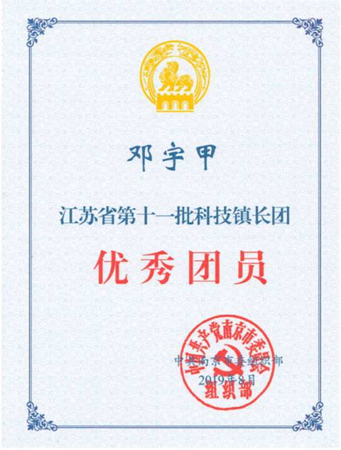 注册送彩金白菜 邓宇甲副教授荣获江苏省第十一批科技镇长团优秀团员称号