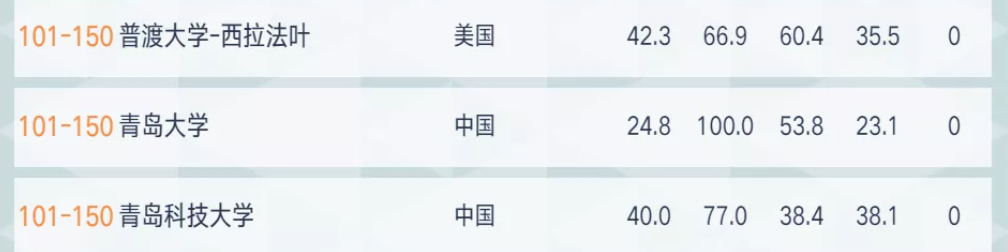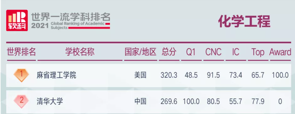 化学和化工两个学科上榜,其中化学工程排名全球101-150,化学排名全球201-300,均较2020年有大幅提升。