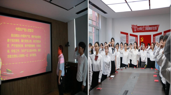 随后,学工办主任、学生第二党支部书记付刚帮带领全体毕业生党员集体宣誓。全体人员佩戴党徽、集体起立,举起右手、握拳过肩,在鲜红的党旗下进行庄严宣誓,展现了毕业生党员们牢记初心、砥砺前行的信念和决心。为了帮助毕业生党员更好地进行组织关系转接工作,学院团委负责人、学生第三党支部书记史氾平为毕业生党员们详细讲解了组织关系转接工作的具体流程和注意事项,并就组织关系转接中的疑难问题进行了耐心解答。