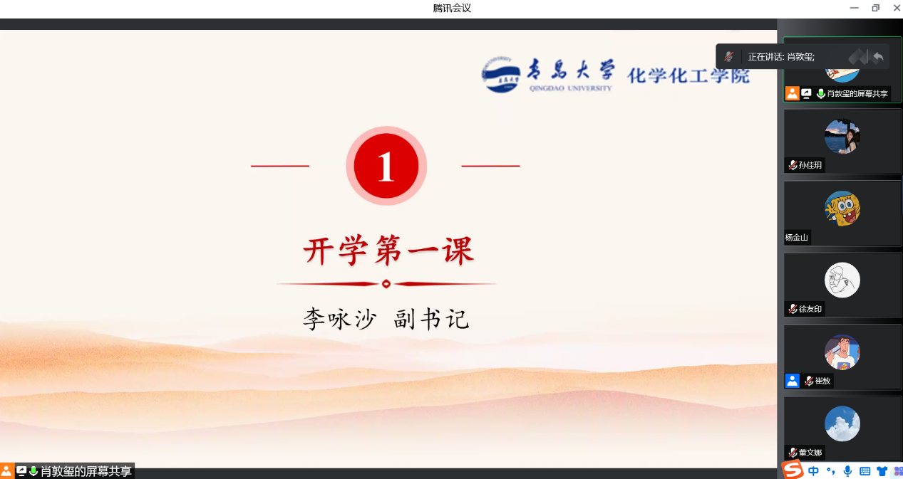 最后,肖老师强调同学们要端正思想,以积极饱满的态度迎接党的二十大胜利召开,强调同学们要严格遵守学校防疫规定,注意宿舍安全、实验室安全、财务安全、网络数据安全等。