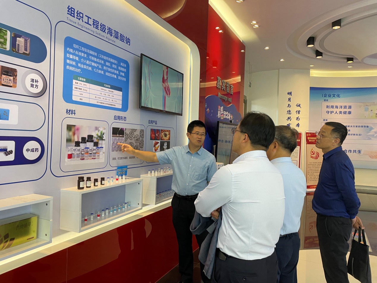 集团党委副书记李可昌带领大家参观了明月海藻科技馆、海藻活性物质国家重点实验室。