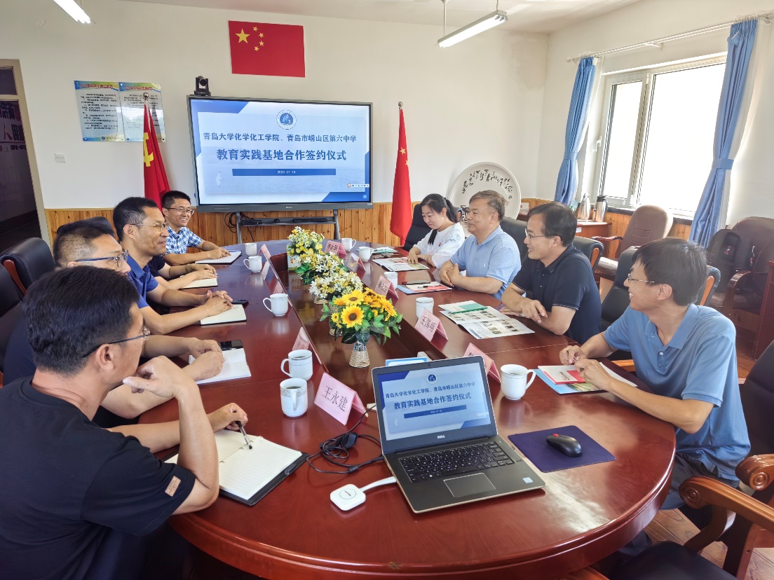 书记姜永杰、院长王国明、党政办主任李志国、化学教育系主任韩松德、学科教学负责人万延岚,与青岛市崂山区第六中学校长尹相京、党支部书记段晓娣、副校长徐晓、李道文、王永建等共同出席仪式。