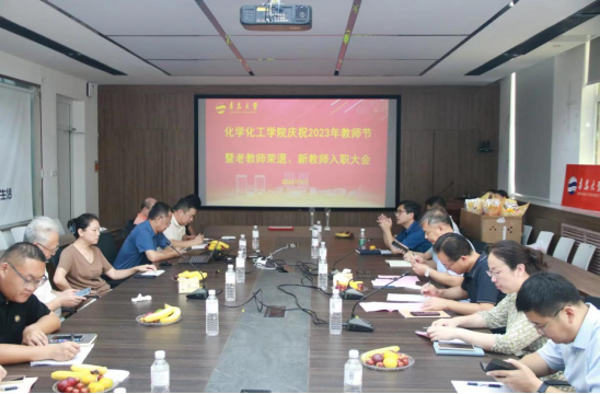 在博观楼206会议室隆重举行庆祝2023年教师节暨老教师荣退、新教师入职大会,院党政领导班子成员、各系正副主任、各系(中心)支部书记以及部分教师代表等参加大会,大会由院党委副书记李咏沙主持。