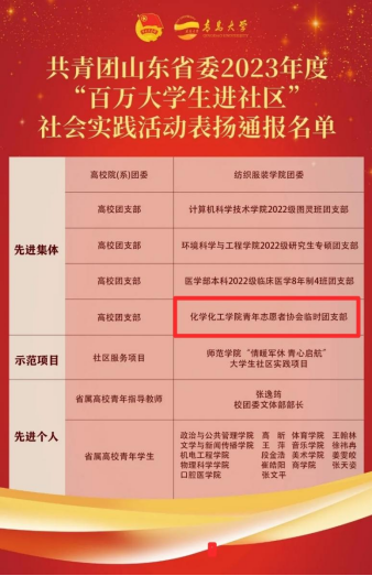 近日,共青团山东省委公布了2023年度“百万大学生进社区”社会实践活动表扬通报名单,我校5个先进集体、1个示范项目、10名先进个人获省级“百万大学生进社区”社会实践项目表彰。其中,注册送彩金白菜