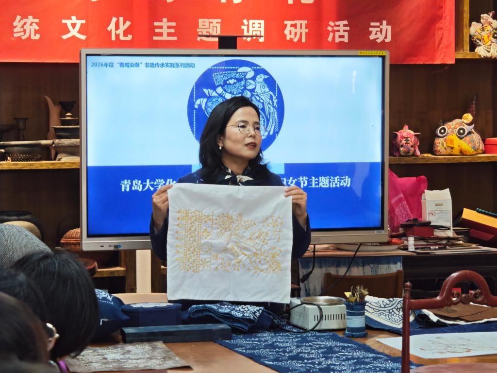 于3月5日下午14点,在青大民间工艺美学馆举办“蓝印祥马,不负芳华”非遗蓝印花布主题体验活动,邀请全院女教职工共赴一场雅致的传统美学之约,在指尖匠心间感受非遗魅力,共度一个温馨而有意义的节日。