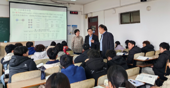 书记姜永杰在浮山校区博文楼听取了由于正泽老师为24级化师专业开设的《化学与人生》课程,院长毕赛则在金家岭校区东院实验楼听取了韩松德老师为25级化师专业讲授的《无机化学-下》。
