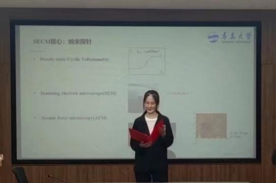 孙童老师从自己的学习工作经历谈起,随后又结合自己的研究方向从SECM介绍及工作原理、利用SECM对二维催化材料的原位表征、利用快速扫描模式对TMDs相变过程的原位表征三个方面切入,介绍了利用扫描电化学显微镜定量研究二维催化材料活性位点的原理、方法及应用,使同学们对扫描电化学显微镜定量研究二维催化材料有了一个充分的认识。