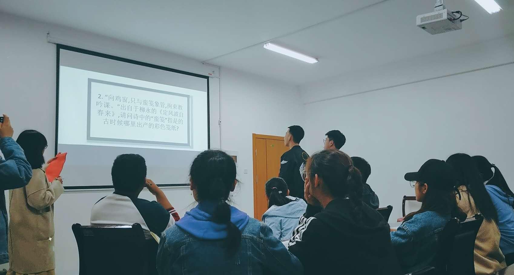 学子的人文风采的能力与意识,学生会秘书处于4月15日晚在403会议室举办了“赏中华诗词风采,品传统文化之美”化院首届诗词大会。